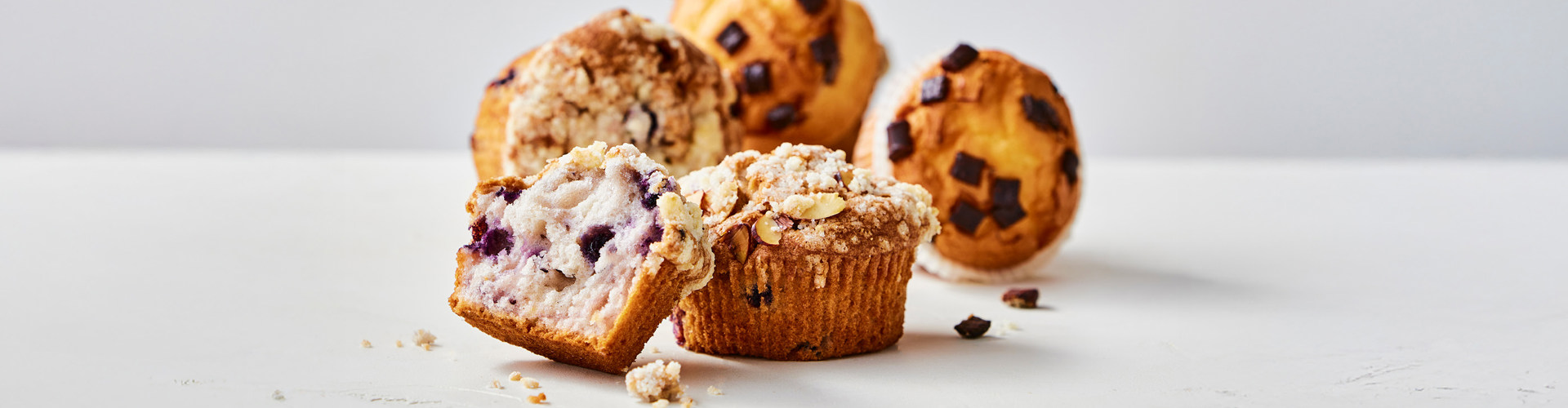 Vores muffin blandinger giver mulighed for at skabe et spændende sortiment med stor variation af indbydende smage og sikrer dig muffins der holder sig saftige og friske længe. Alle vores blandinger har en dej med høj viskositet, der sikrer at bær og chokoladestykker ikke synker til bunden. Dejen er meget bagestabil og de færdigbagte muffins får alle den flotte muffintop.